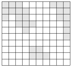 이 나라는 N×N크기의 이차원 평면상에 존재한다. 이 나라는 여러 섬으로 이루어져 있으며, 섬이란 동서남북으로 육지가 붙어있는 덩어리를 말한다. 다음은 세 개의 섬으로 이루어진 나라의 지도이다.